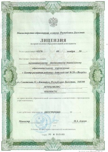 Лицензия (выписка из реестра лицензий на осуществление образовательной деятельности)